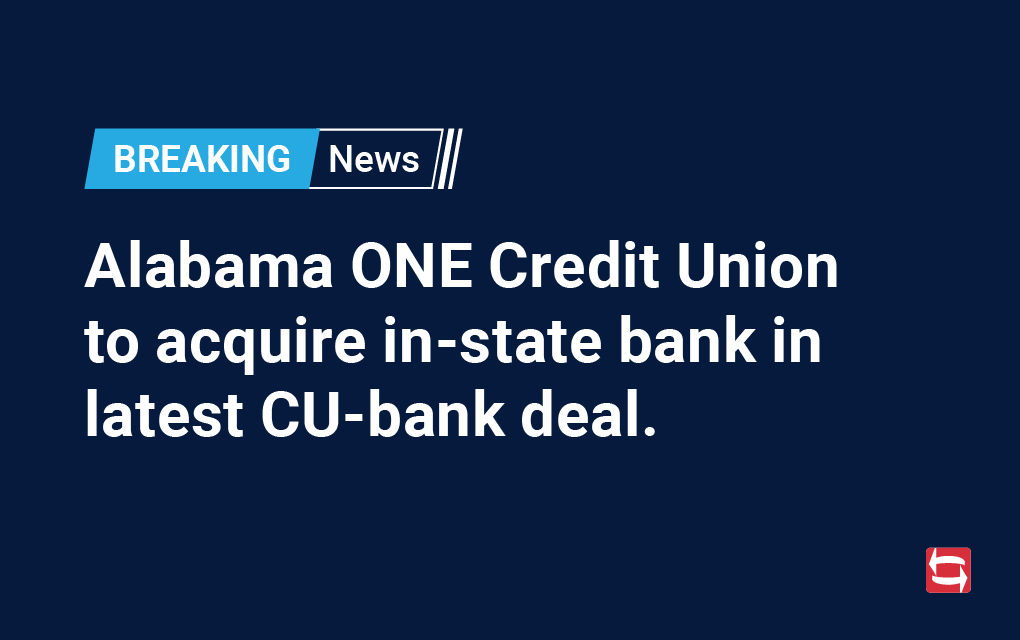 Alabama ONE Credit Union to acquire in-state bank in latest CU-bank deal.