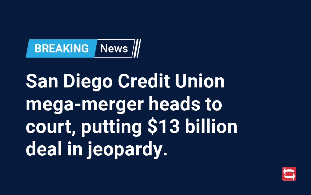 San Diego Credit Union mega-merger heads to court, putting $13 billion deal in jeopardy.