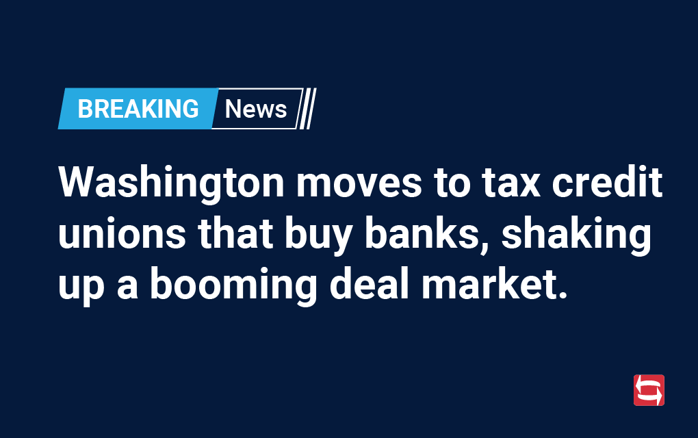 Washington moves to tax credit unions that buy banks, shaking up a booming deal market.